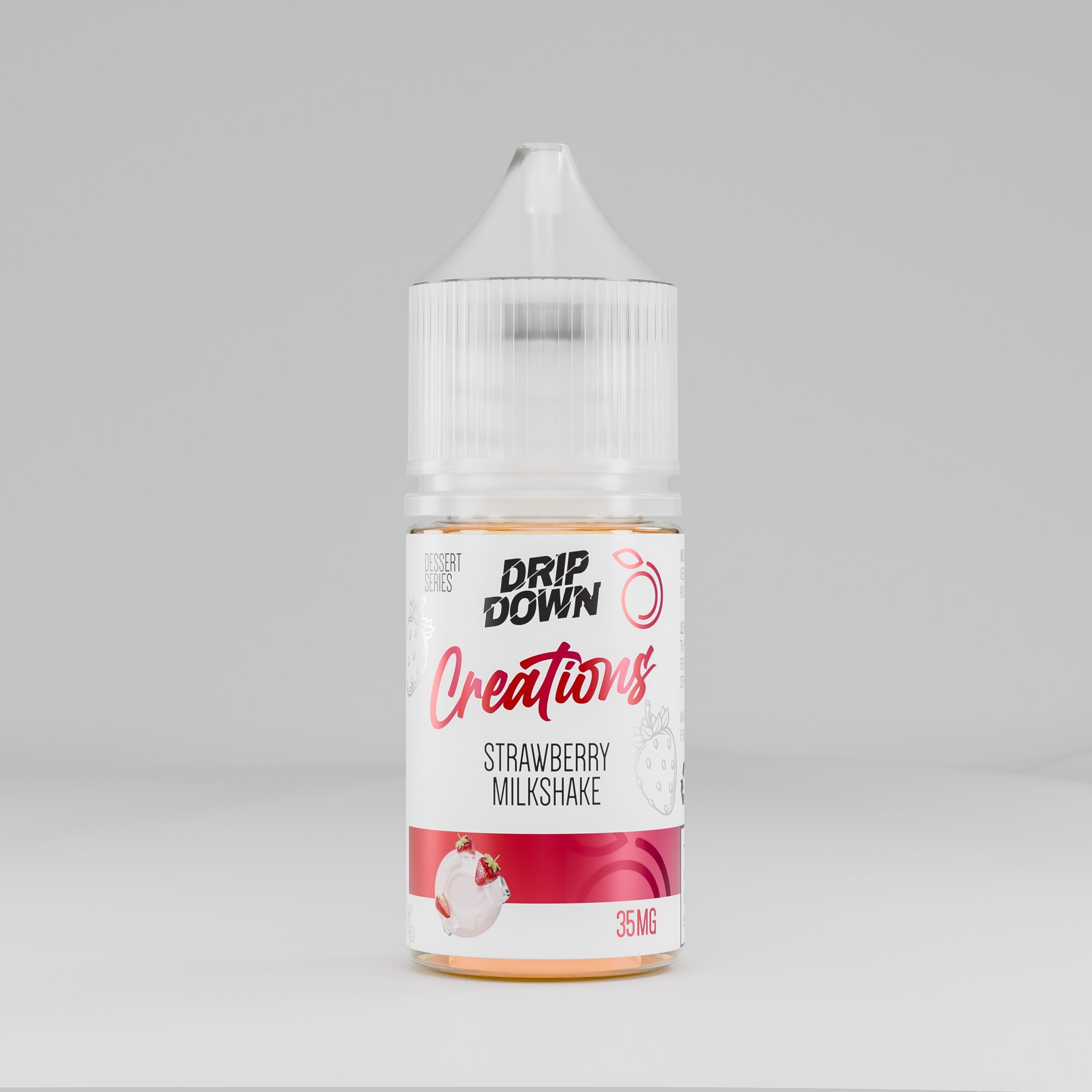 Drip Down Creation Dessert Series Strawberry Milkshake Nic Salt delivers a creamy and fruity experience that feels just like sipping on a freshly blended milkshake. The flavor bursts open with the sweetness of ripe, juicy strawberries, perfectly balanced by the smooth, velvety taste of cold milk and creamy vanilla undertones. Each puff brings a nostalgic dessert sensation, recreating that classic diner-style strawberry milkshake with an irresistible balance of sweetness and creaminess. It’s a treat that dessert lovers will find hard to put down.