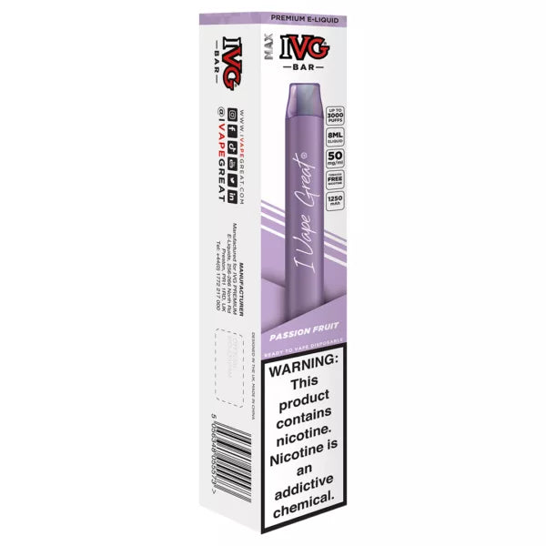 The interesting IVG Passion Fruit Max Bar mix captures the tangy-sweet tones of passion fruit with overwhelming tropical notes. This disposable vape is all the craze in Pakistan and has a joyful tropical island vibe because of the exotic, mouth-watering passion fruit. Additionally, the puff-activated technology of the Max Bar raises our passion fruit vape juice to a different level thanks to its intense flavors of delicious passion fruit. Its 1250mah powerful battery is the cherry on top.