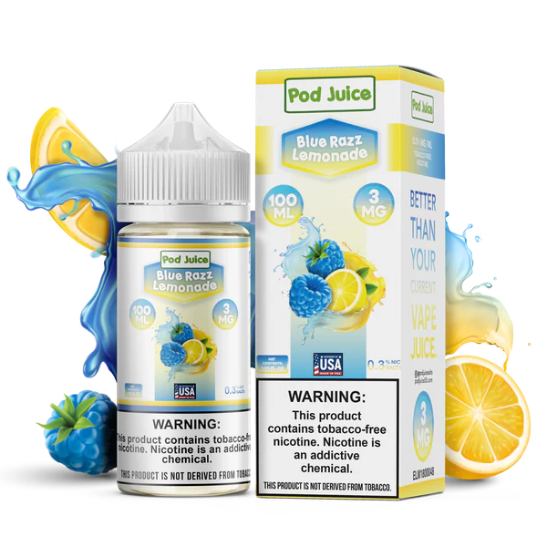 Beat the heat with Blue Razz Lemonade by Pod Juice, a refreshing vape juice that's perfect for warm weather. This 100ml freebase e-liquid combines the sweet and tangy flavor of blue raspberry with the zesty taste of lemonade, creating a flavor that's both revitalizing and delicious. With a nicotine content of 3mg, Blue Razz Lemonade is ideal for those who crave a smooth and enjoyable vape.