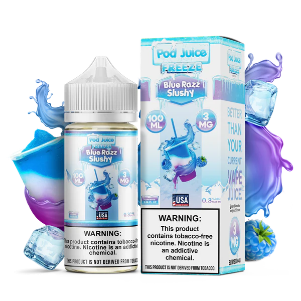 Pod Juice Blue Razz Slushy Freeze 3mg 100ml Freebase