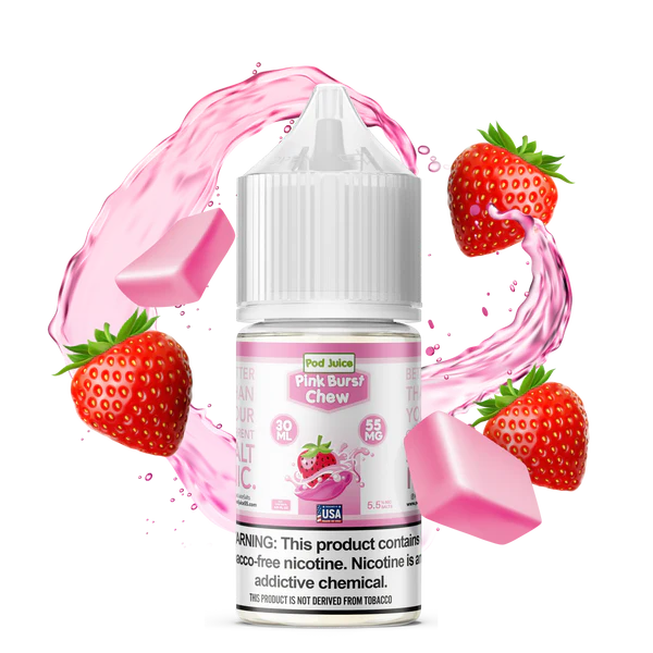 Introducing Pink Burst Chew: Indulge in a burst of sweetness with our Pink Burst Chew flavor. This delightful blend captures the essence of your favorite chewy pink candies, offering a medley of fruity goodness in every puff. With each inhale, you'll be transported to a world of childhood nostalgia, where the vibrant and sweet notes of assorted fruits come to life, creating a vaping experience that's as joyful as it is delicious. Immerse yourself in the candy-inspired fusion of flavors with every puff of Pink Burst Chew.