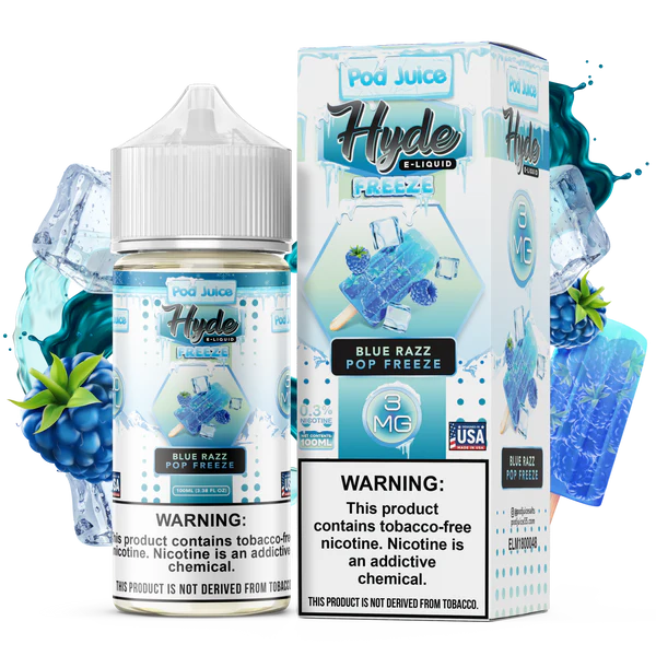 As you inhale, the sweet and tart flavors of blue raspberry pop into your taste buds, followed by a cool menthol sensation that's reminiscent of a refreshing summer treat. The flavor is both fruity and revitalizing, with a perfect balance of sweet and tangy that will leave you feeling energized. On the exhale, the menthol kick adds a crisp and clean finish, leaving a refreshing aftertaste that's sure to satisfy. With its unique and addictive flavor, Blue Razz Pop Freeze by Pod Juice x Hyde is a must-try for anyone looking for a sweet and refreshing vape juice.