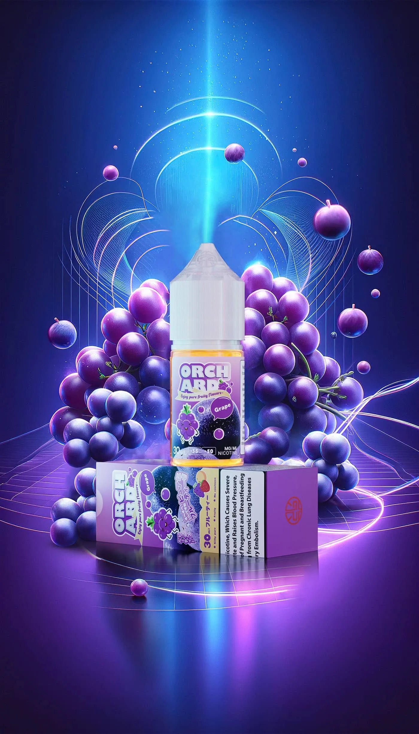 Packaged in a 30ml chubby gorilla bottle, Tokyo Orchard Series Grape Ice is designed for convenience and easy refilling. It comes in nicotine strengths of 35mg and 50mg, providing a satisfying throat hit while maintaining a smooth vaping experience. The nicotine salt formula ensures rapid absorption, making it ideal for those seeking a flavorful yet refreshing all-day vape. Perfect for grape lovers, this blend offers a cool and fruity delight.