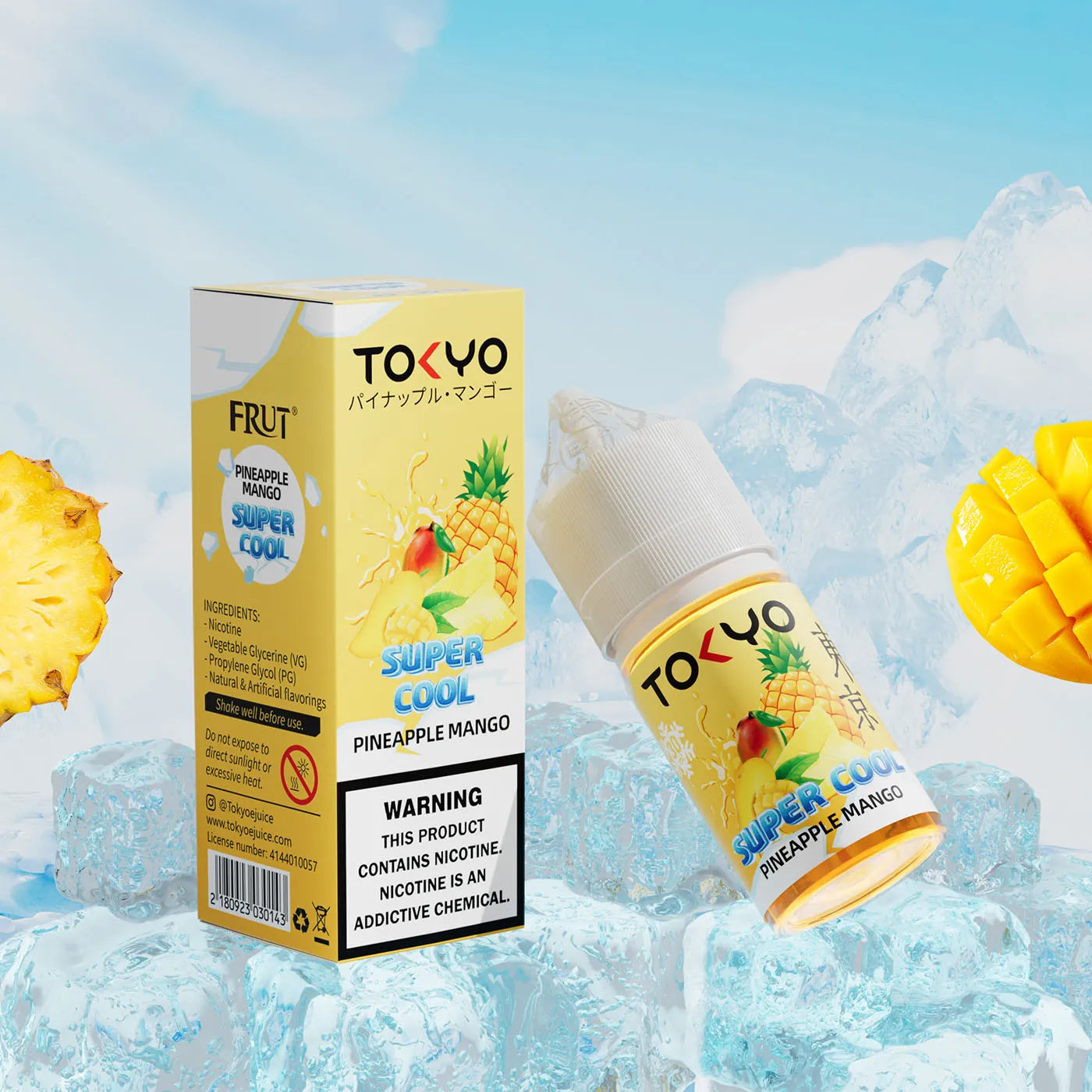 Tokyo Super Cool Series Nic Salt Pineapple Mango Ice offers a tropical fusion of ripe pineapple and juicy mango, enhanced by a refreshing menthol finish. The vibrant sweetness of the fruits blends harmoniously, delivering a balanced, flavorful vape with a cool, icy touch on the exhale.